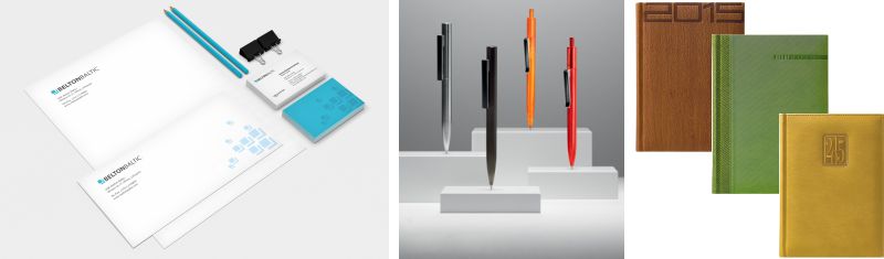 На странице порфтолио можно посмотреть примеры готовой рекламной и представительской продукции с уже нанесенными логотипами.