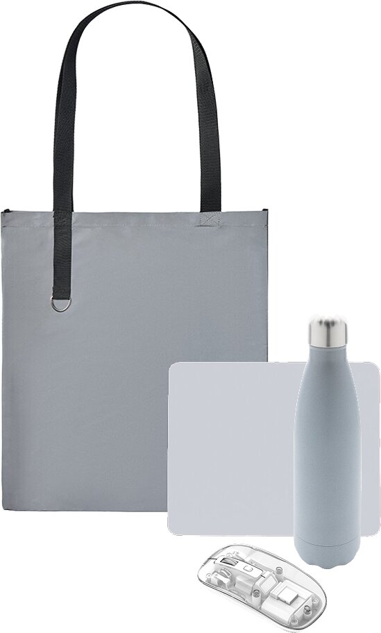 NL00040 | Набор подарочный: Светоотражающая сумка для шопинга Neo Reflector, бутылка для воды "P436.473", коврик для мыши "Sira" |