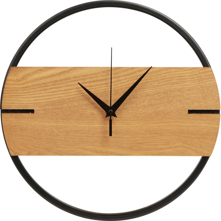 186237 | Деревянные часы с металлическим ободом, диаметр 30 см, "Time Wheel", натуральный/черный |