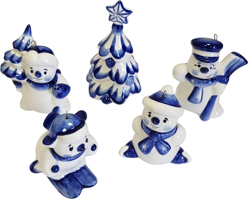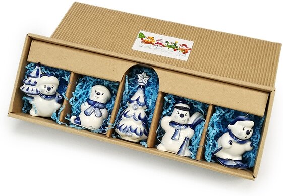 82811 | Набор елочных игрушек Снеговички кобальтовая роспись |