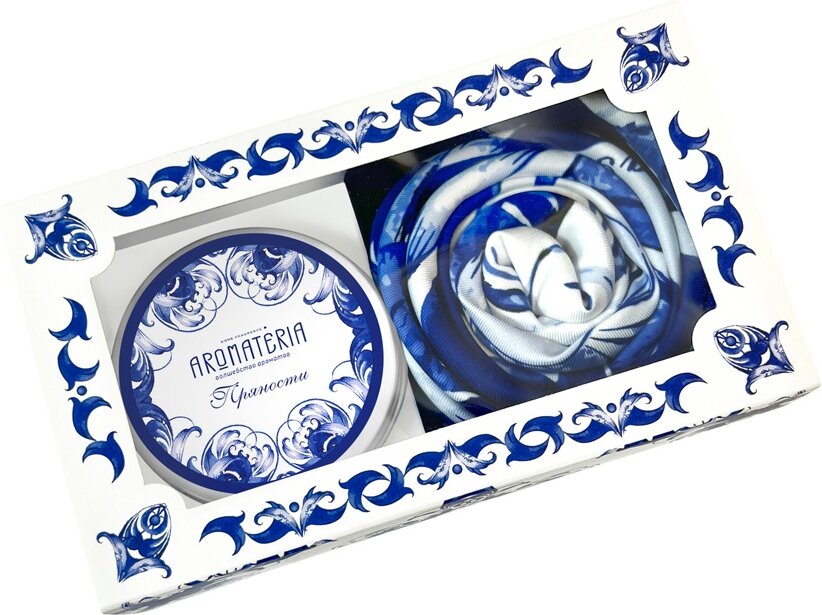 94958 Набор: платок «Гжель» и свеча «Птица счастья»
