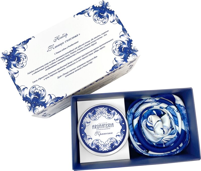 Набор: платок «Гжель» и свеча «Птица счастья»