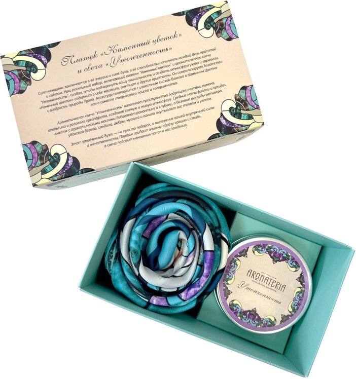 Набор: платок «Каменный цветок» и свеча «Утонченность»