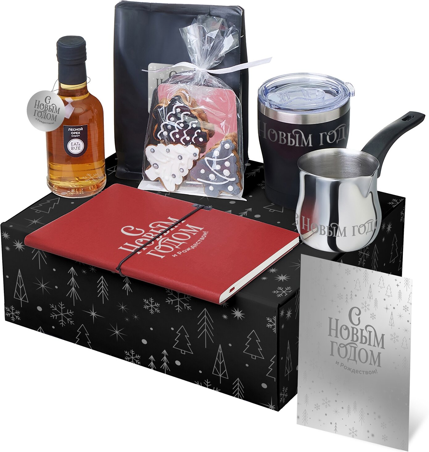 Подарочный набор с туркой, кофе и термокружкой, черный