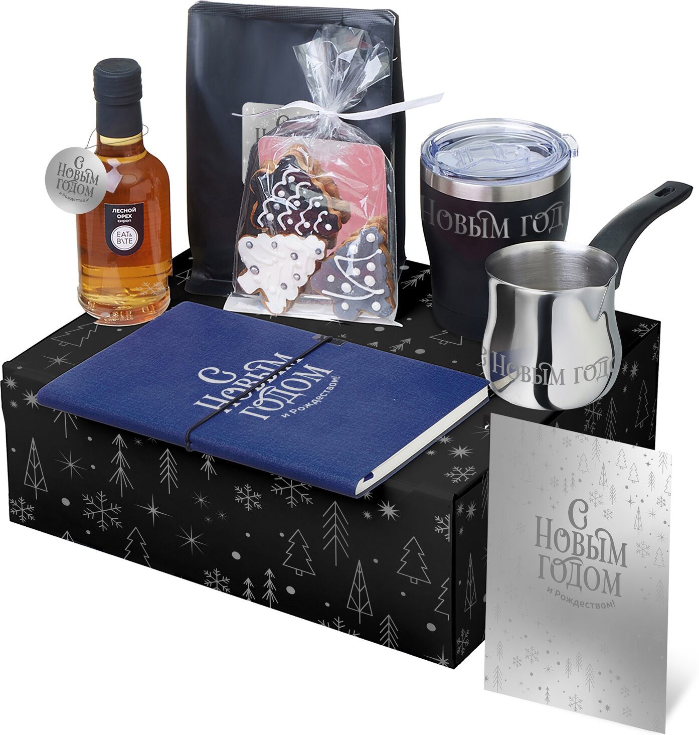 Подарочный набор с туркой, кофе и термокружкой, черный