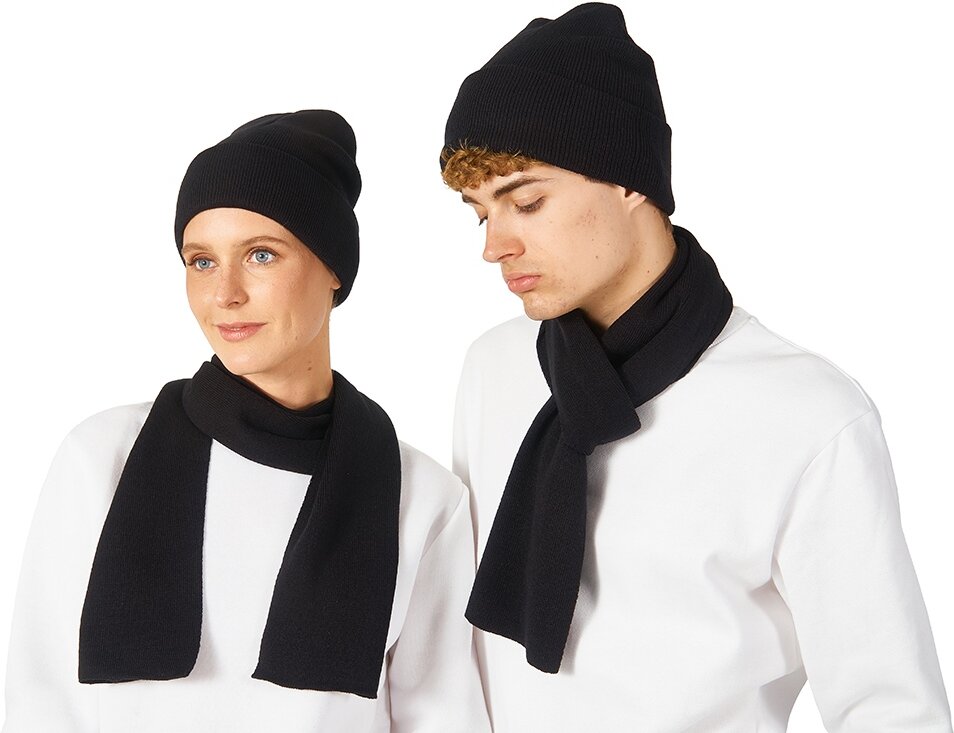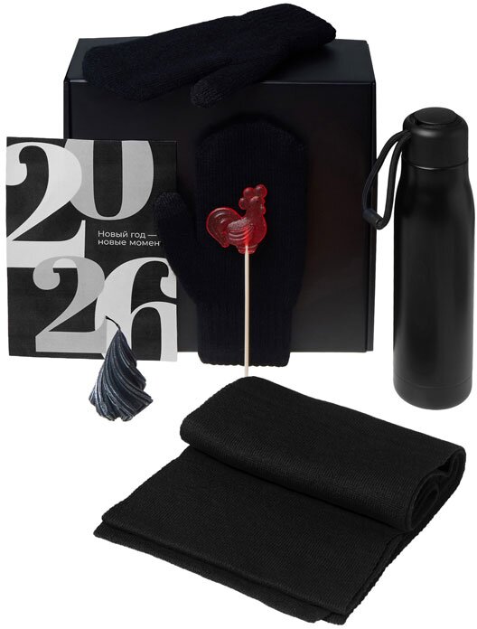 210107.07 | Подарочный набор с варежками, шарфом и термосом, черный |