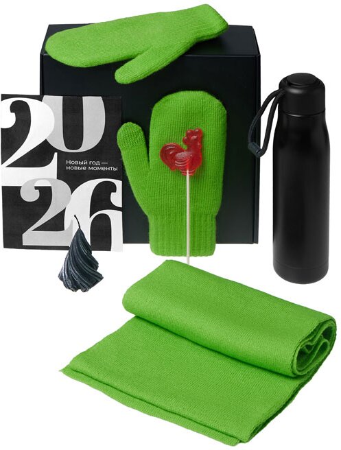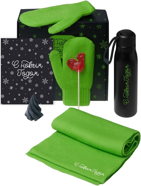 210107.03 | Подарочный набор с варежками, шарфом и термосом, зеленое яблоко |