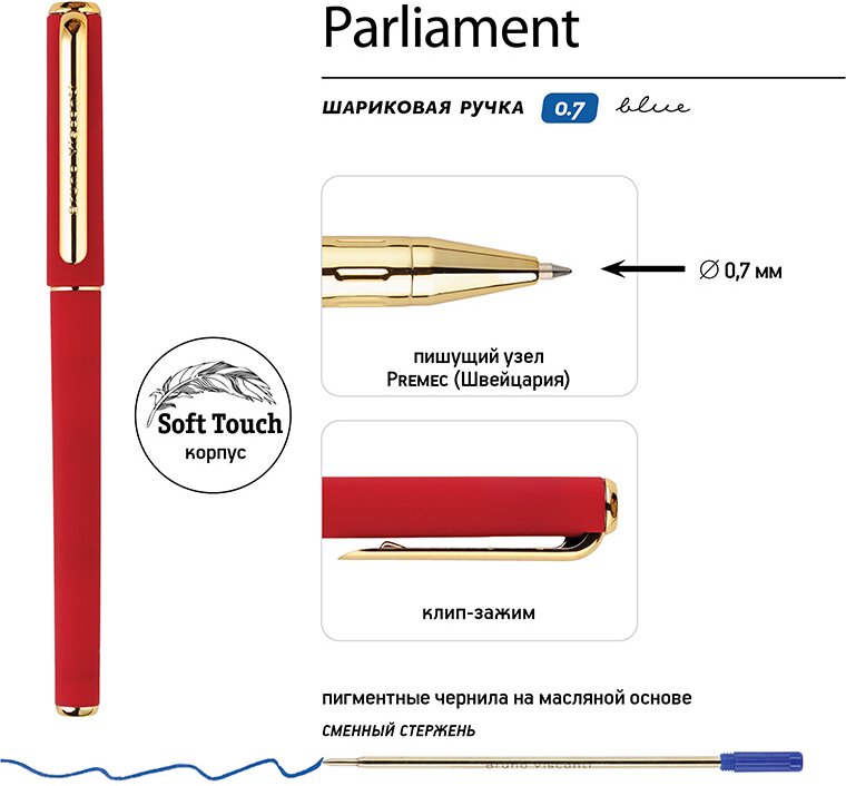 20-0472.03 | Ручка шариковая "Parliament", красный/золотистый |
