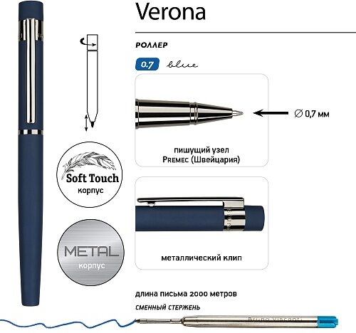 20-0454 | Ручка роллер "Verona", синий/серебристый |
