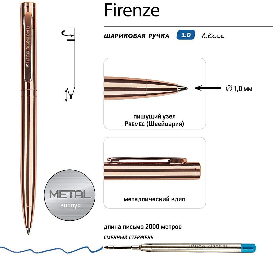 20-0457 | Ручка шариковая автоматическая "Firenze", розовое золото |