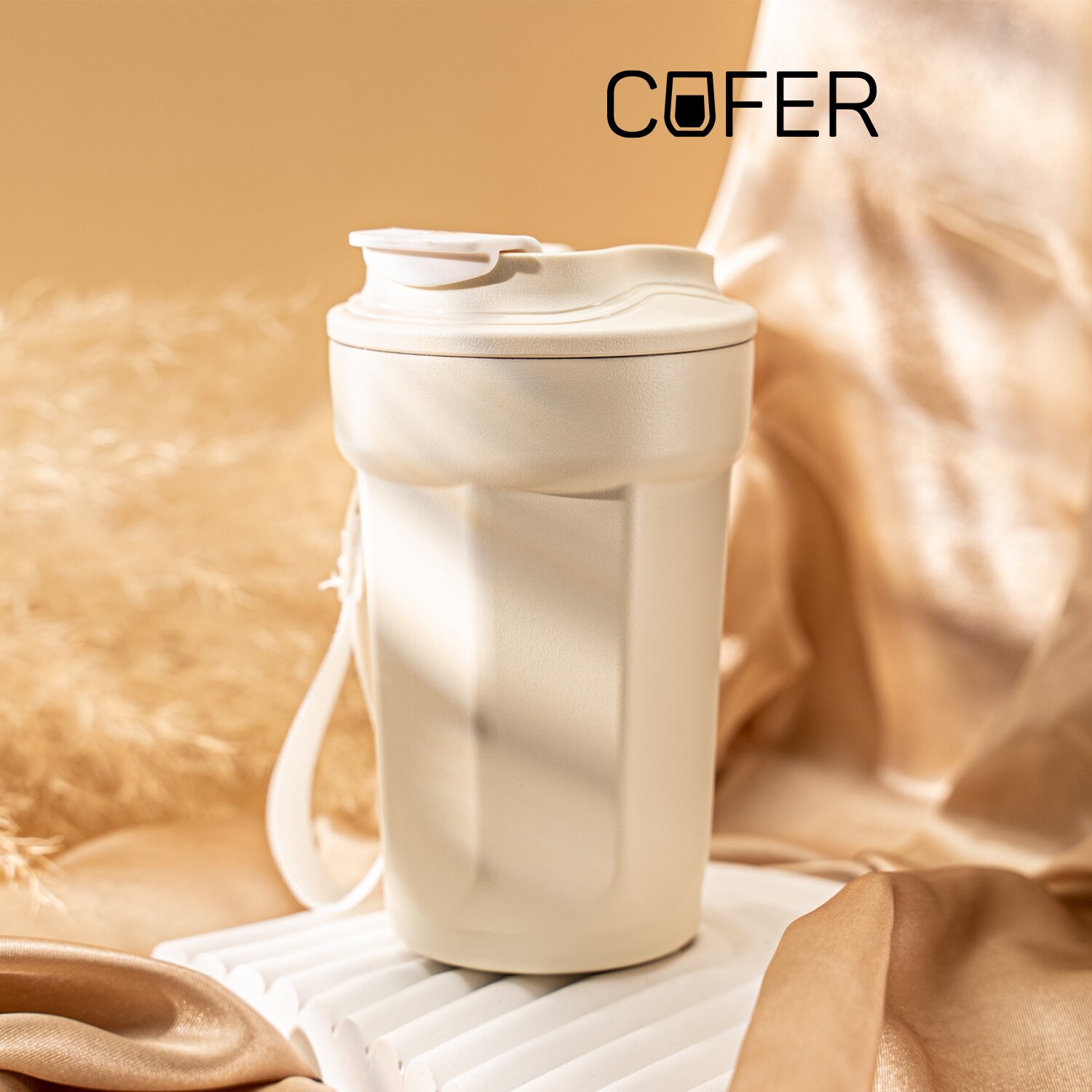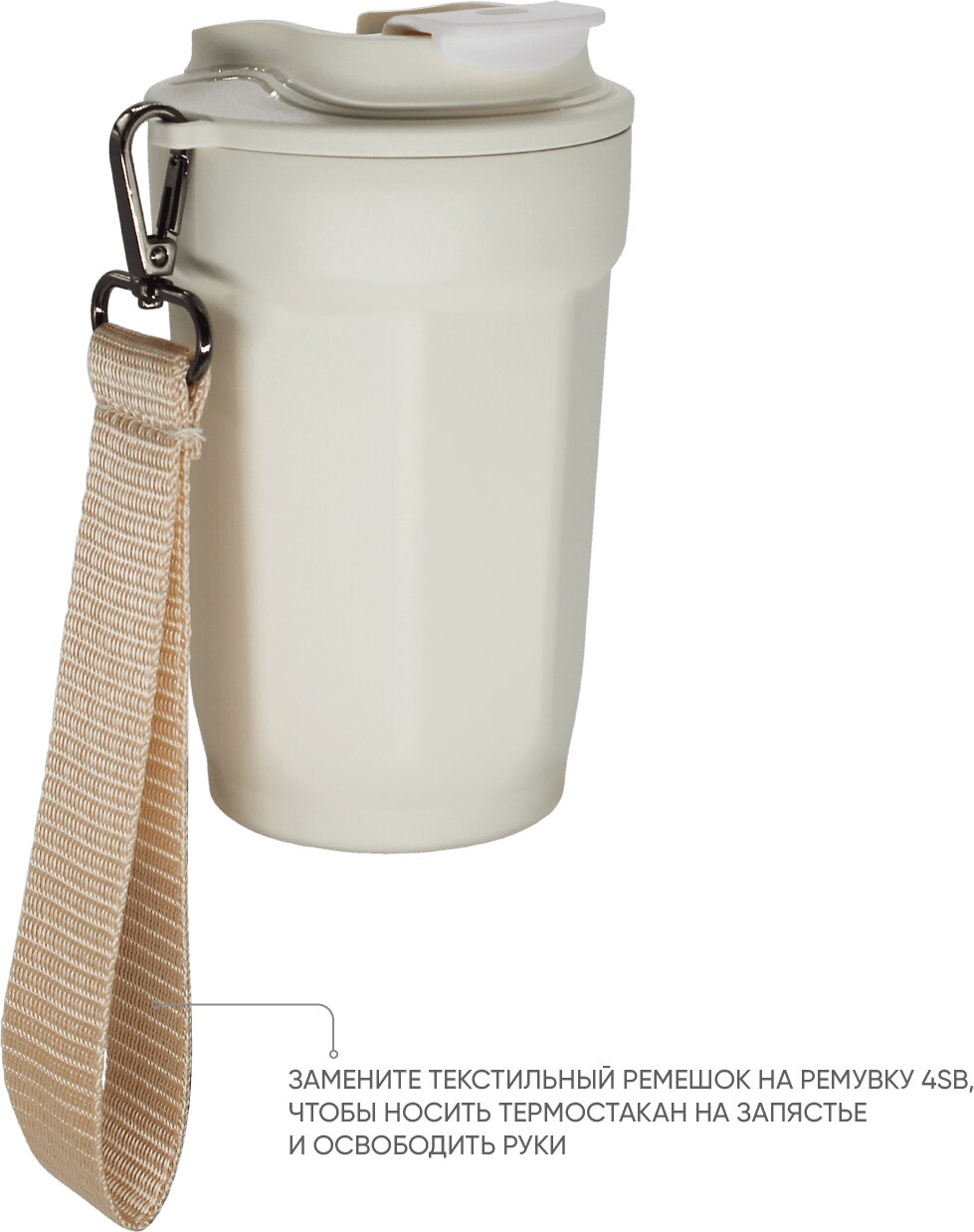 525.38 | Стакан термический "Tedge" с ремешком, слоновая кость |