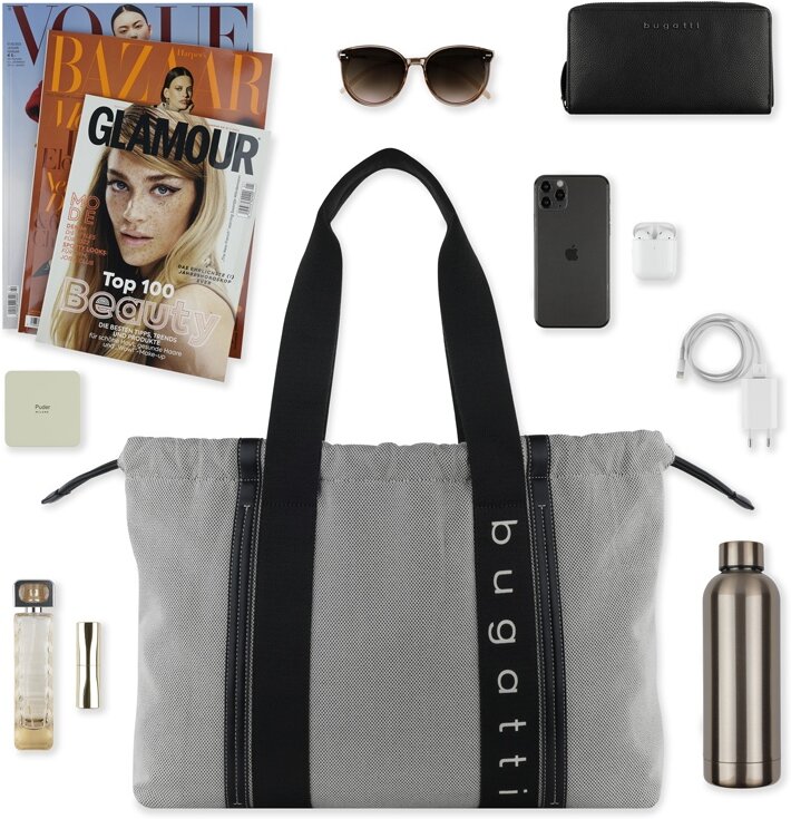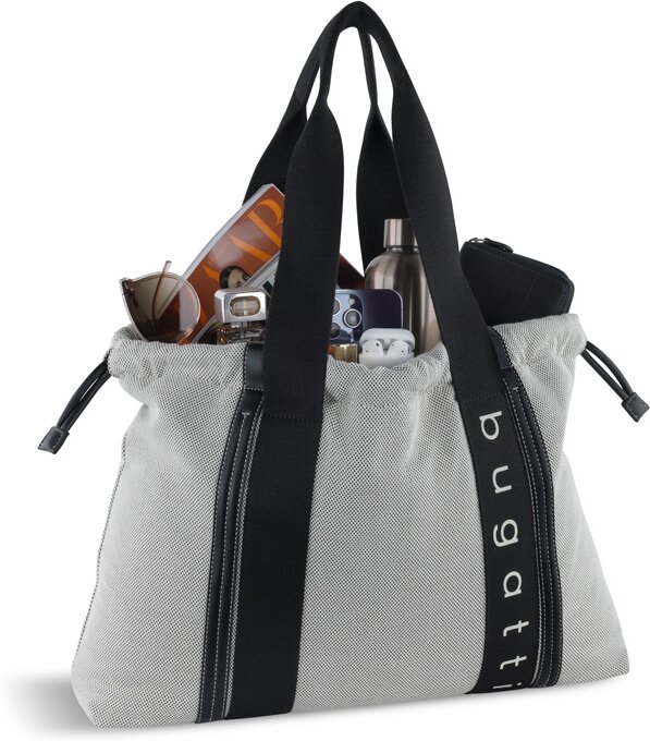 49539201 | Сумка-шоппер женская BUGATTI Ambra, серо-черный цвет, хлопок/полиэстер, 45х10х34 см |